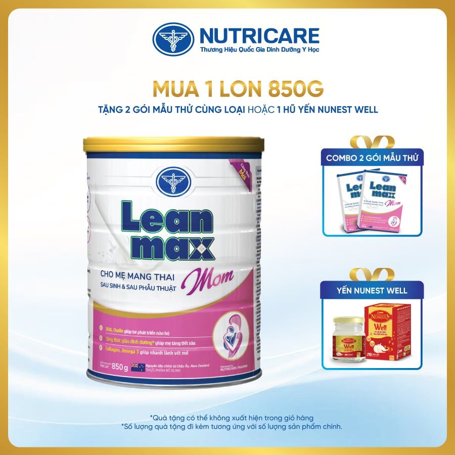 Leanmax Mom - Dinh dưỡng cho mẹ mang thai, mẹ sau sinh và cho con bú. Cung cấp nguồn dinh dưỡng cần thiết giúp mẹ và bé phát triển khỏe mạnh trong giai đoạn mang thai. Giúp mẹ hồi phục sức khỏe sau sinh thường (cắt tầng sinh môn), sinh mổ, nhanh lành vết thương, tăng tiết sữa, giảm táo bón.