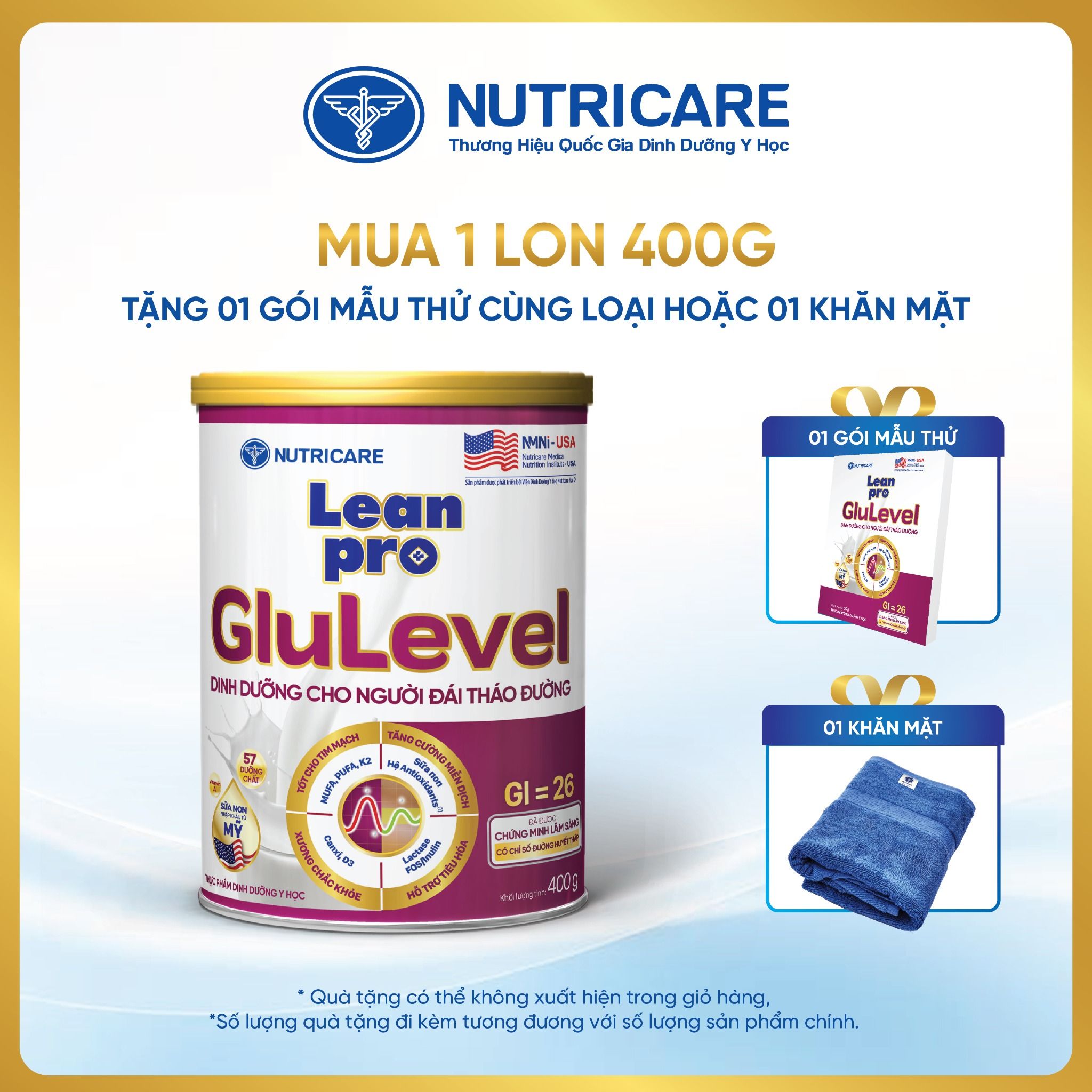 Thực phẩm dinh dưỡng y học Leanpro Glulevel đã được chứng minh lâm sàng có chỉ số đường huyết thấp (GI = 26), giúp duy trì chỉ số đường huyết khoẻ mạnh, tốt cho người tiểu đường.